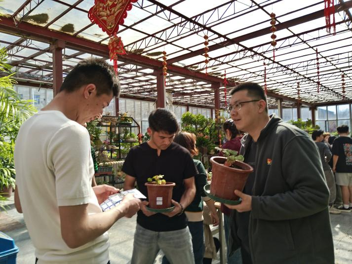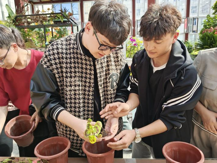 活动伊始,园林社团学生精心准备了天竺葵花苗、营养土、花盆等材料,师生分组协作,挖土、填盆、栽苗、浇水,现场热闹非凡。天竺葵作为喜光耐旱的植物,其种植需注重土壤排水性与光照管理。园林教研室的老师指导师生们育苗技巧,将课堂延伸到自然中,寓教于乐的氛围让活动更显生动。