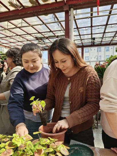 最后,师生将亲手栽种的天竺葵互相赠予结对教师,象征师生情谊如绿植般生生不息。捧着花苗的师生们感慨:“这不仅是一份礼物,更是责任与信任的延续。”花房内欢声笑语交织,民族团结的温情与协作育人的理念在此刻交融升华。
